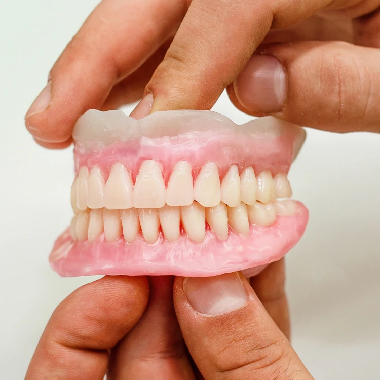 Toute prothèse amovible comporte une base plus ou moins étendue, le plus souvent en résine acrylique imitant la gencive, servant de support à des dents artificielles; celles-ci sont en porcelaine ou en résine. On distingue la prothèse amovible complète et la prothèse partielle amovible.